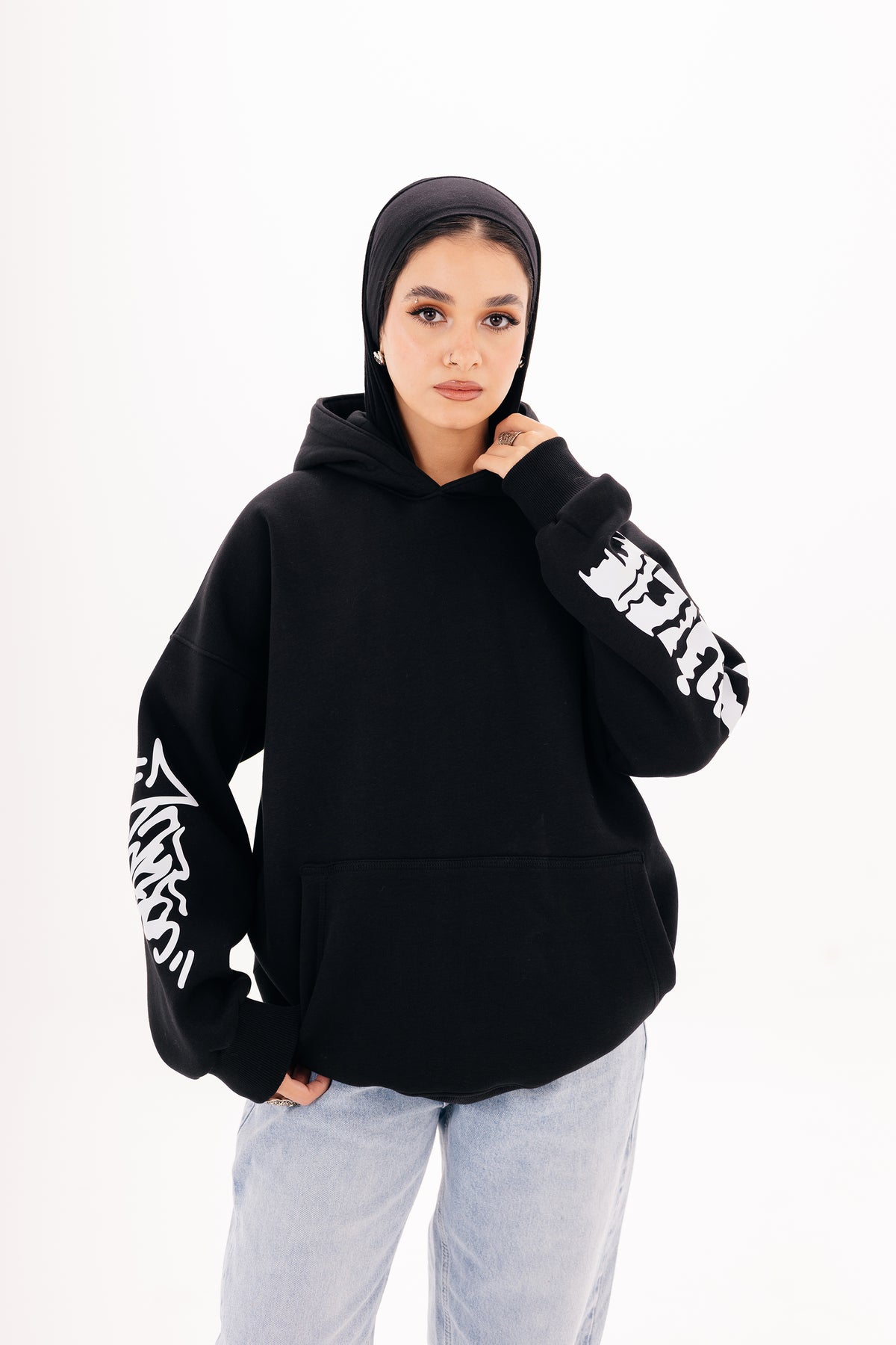 A heavyweight boxy hoodie with a bold front and back print.